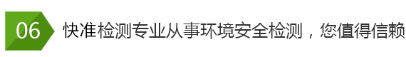 快準(zhǔn)環(huán)境檢測公司技術(shù)力量雄厚,有一套完整的檢測服務(wù)流程,公司注重服務(wù)質(zhì)量, 公司嚴(yán)把質(zhì)量關(guān)向社會承諾:檢測公正、科學(xué)、高效、準(zhǔn)確!空氣檢測、水質(zhì)檢 測、土壤固廢檢測、輻射放射檢測、噪聲振動檢測、環(huán)保認證檢測、裝修材料 檢測就找山東快準(zhǔn)環(huán)境檢測技術(shù)有限公司!